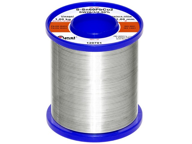 Tinol 1,0mm 1000g Sn60 Pb40, Cynel