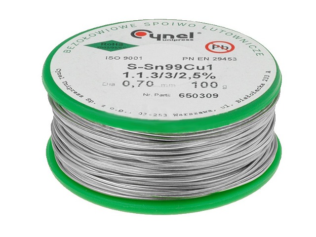 Tinol 0,7mm 100g Sn99 Cu1 bezolovni, Cynel