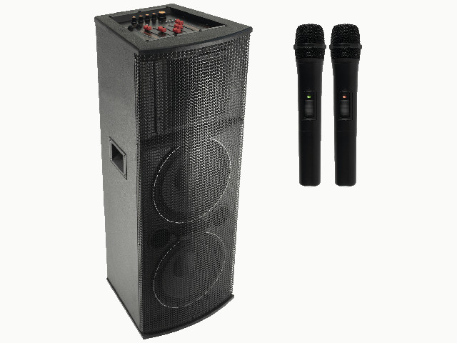 Zvučnik podržavabluetooth, USB, SD/SDHC/MMC, FM radio s automatskim pretraživanjem stanica. U paketu su i 2 mikrofona - KARAOKE