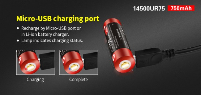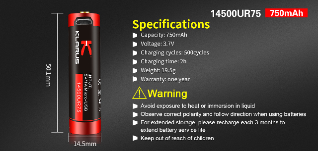 Baterija litij-ion 14500 AA 3,7V 750mAh Klarus USB