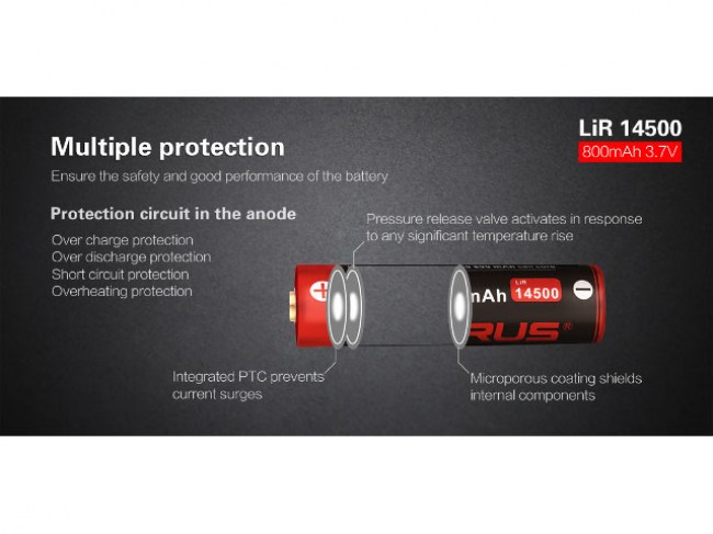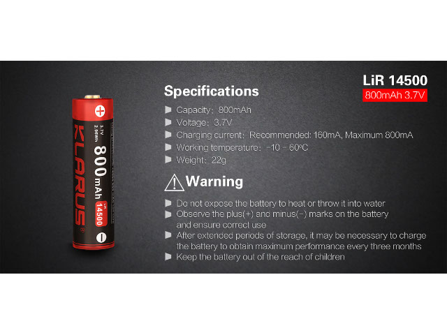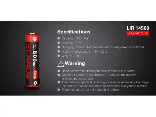 • Baterija litij-ion 14500 AA 3,7V 800mAh PCB Klarus
