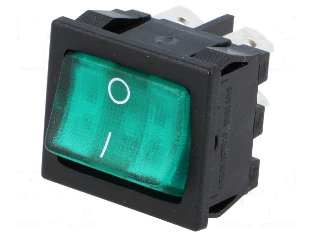 Prekidač vaga ON-OFF 2x2pin 10A 250V zelen s tinj.