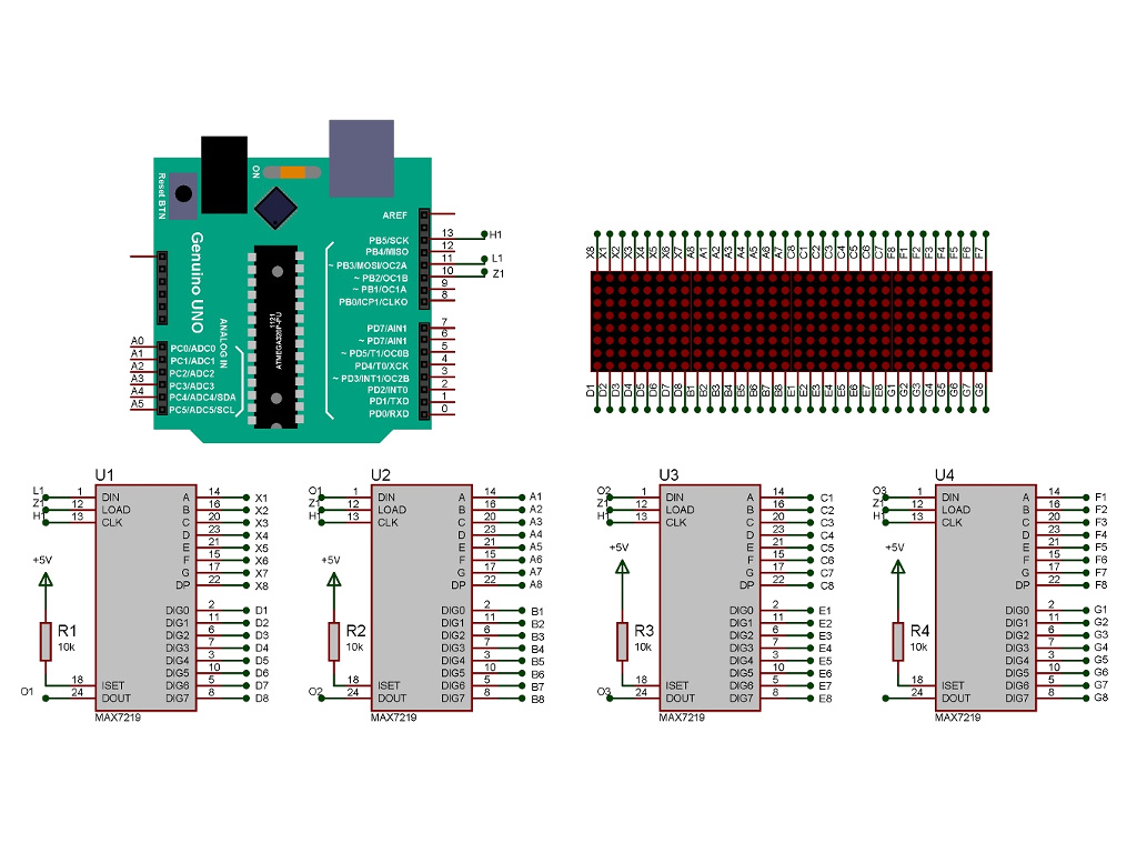 LED matrica 32x8 sa integriranim krugom MAX7219 (8x8x4)