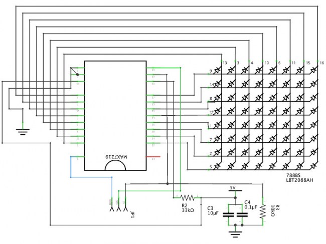 LED matrica zajednčka katoda 8x8 sa integriranim krugom MAX7219