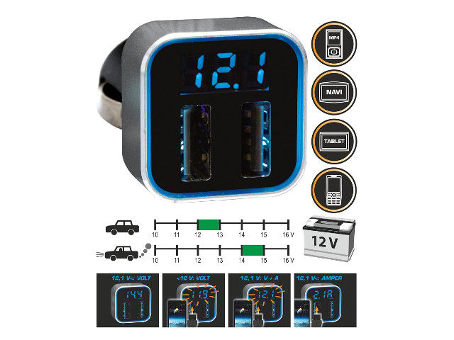 Pretvarač 12-24VDC / 2x USB 2.1A + V-A metar - - -