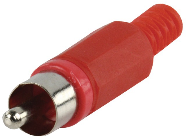 Konektor činč muški za kabel; plastični; crveni
