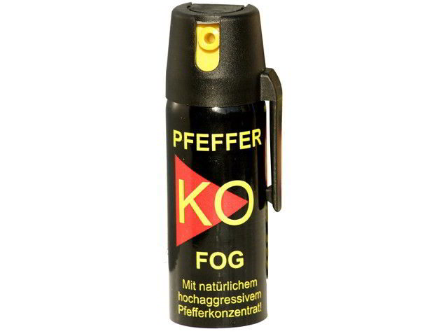 Pfeffer-KO FOG je najučinkovitiji sprej za samoobranu na bazi papra. Sadrži vrlo jak prirodni koncentrat OC. Tehnički onesposobi baš svaku, i najopakiju životinju. Idealna je obrana dok boravite, hodate ili trčite na otvorenom, u šumi ili divljini.Pfeffer-KO FOG nije učinkovit samo pri napadu životinja, nego i pri napadu nasilnih osoba. U Švicarskoj, Austriji, Belgiji, SAD-u itd. se potpuno odobrava za samoobranu, a u nekim državama ga koristi i policija. Neovisno o dozvolama, Pfeffer-KO FOG je namijenjen jedino Vašoj sigurnosti.Pfeffer-KO FOG stvara aktivnu maglu stožastog oblika dosega 4 metra.Za sigurnu je primjenu u rizičnim situacijama s više napadača.Pfeffer-KO FOG je potpuno razgradiv u prirodi i nije štetan ozonu. Bočica40ml