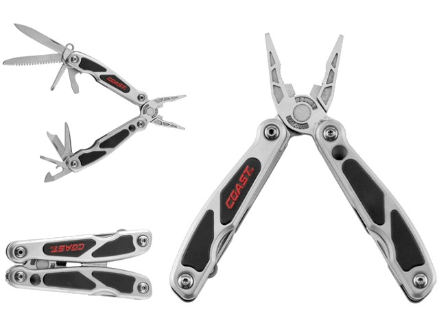 Dvije ugrađene LED diode, rezač žica, skidač izolacije žica, nož (5,1cm oštrica), odvijač, otvarač boca, otvarač konzervi, pilica, rašpica