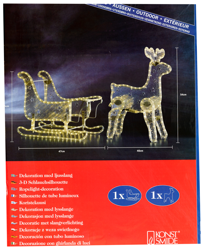 Božićni Jelen sa saonicama LED 47x39,5cm i 40x54cm