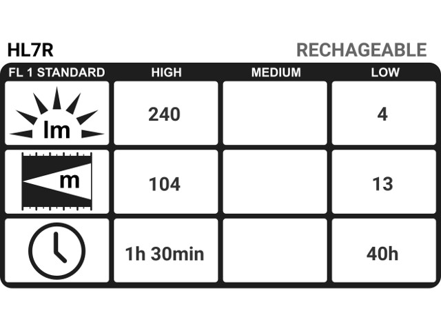 • Svjetiljka COAST HL7R; ACCU; naglavna; 240lm, 104m