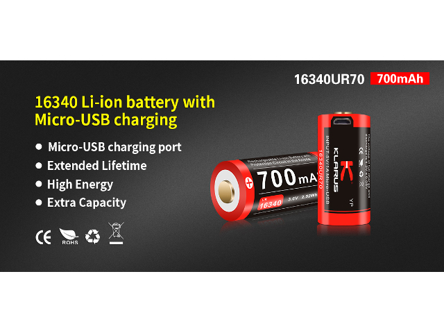 • Baterija litij-ion 16340 3,6V 700mAh Klarus USB