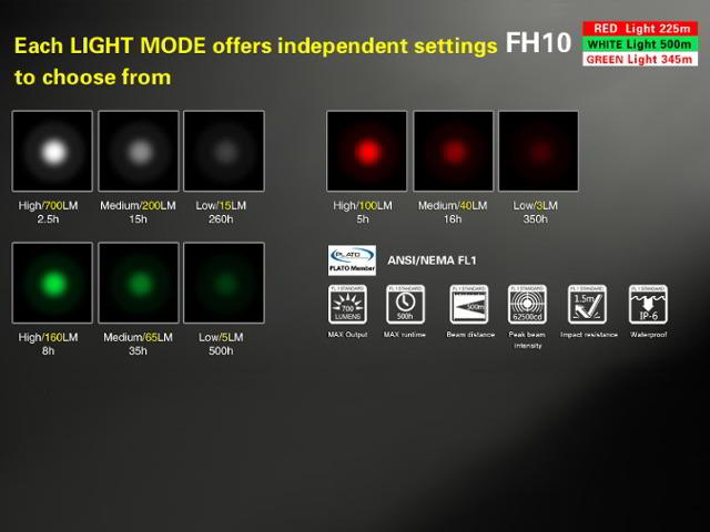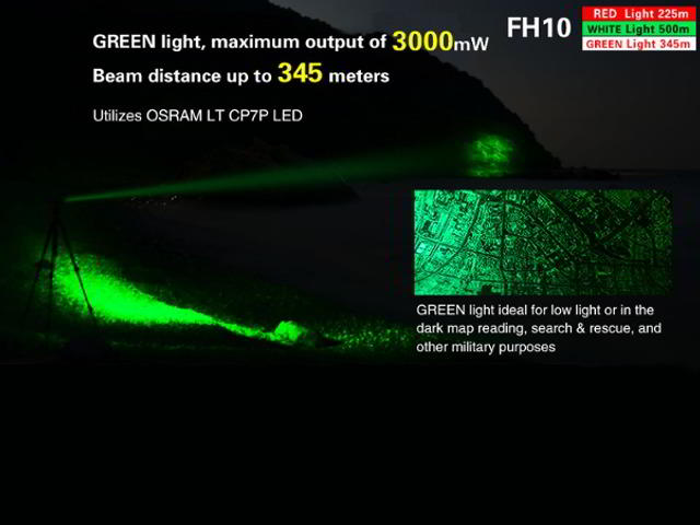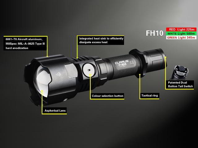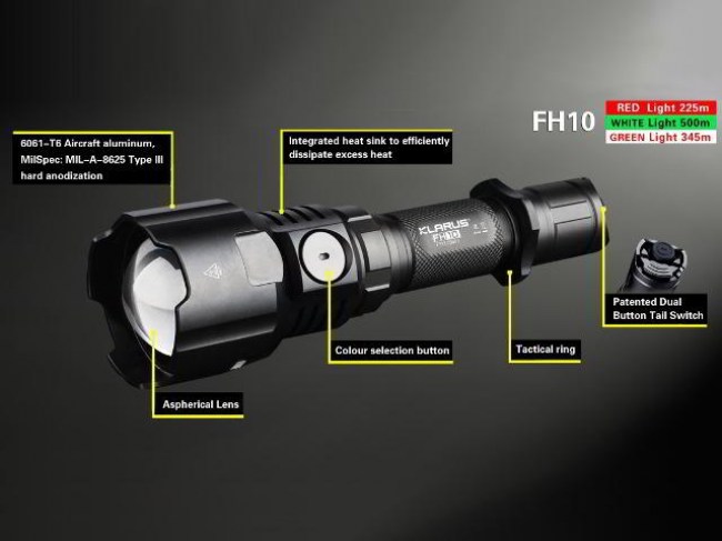 Svjetiljka Klarus FH10; 700lm; biela-crvena-zelena