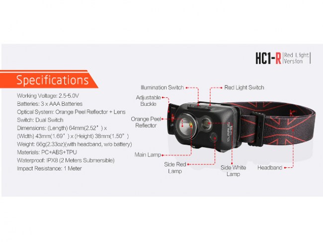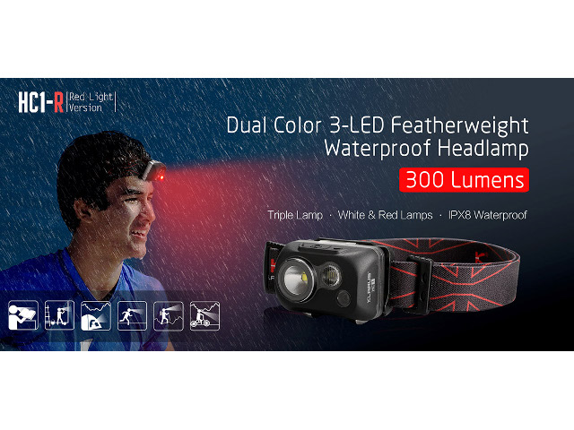 • Svjetiljka Klarus HC1-R naglavna, 300lm, 72m +crv.