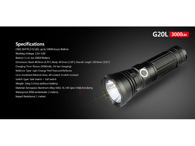 • Svjetiljka Klarus G20L; ACCU, 3000lm, 300m